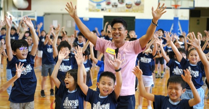 圖說/推廣大使柯有倫與學生們體驗運動後帶來的快樂,一起用運動打造身心健康。