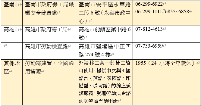 職業災害預防及重建中心:0800-068-580(您要幫我幫您)。